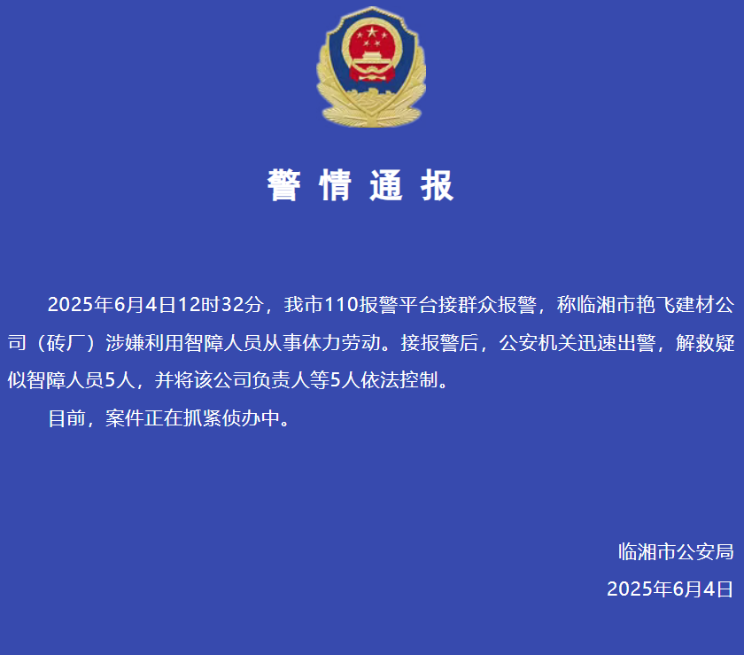 湖南临湘警方:正在一砖厂解救疑似智障人员5人,让消费者安心点外卖,